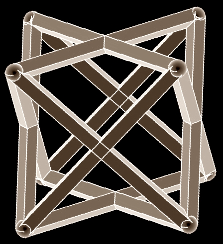 - Two compound cubes. One rotated 45o away from the other at two directions.