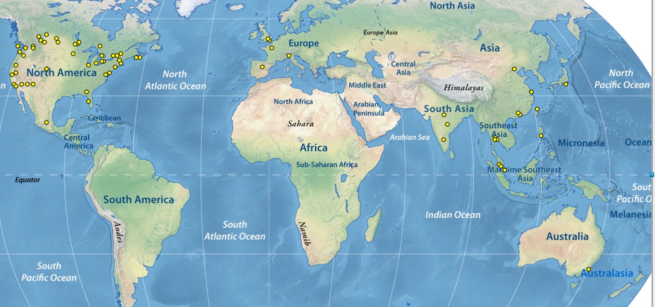 Hong Kong, Taiwan, Philippines, Thailand, Malaysia, Singapore, and Australia.